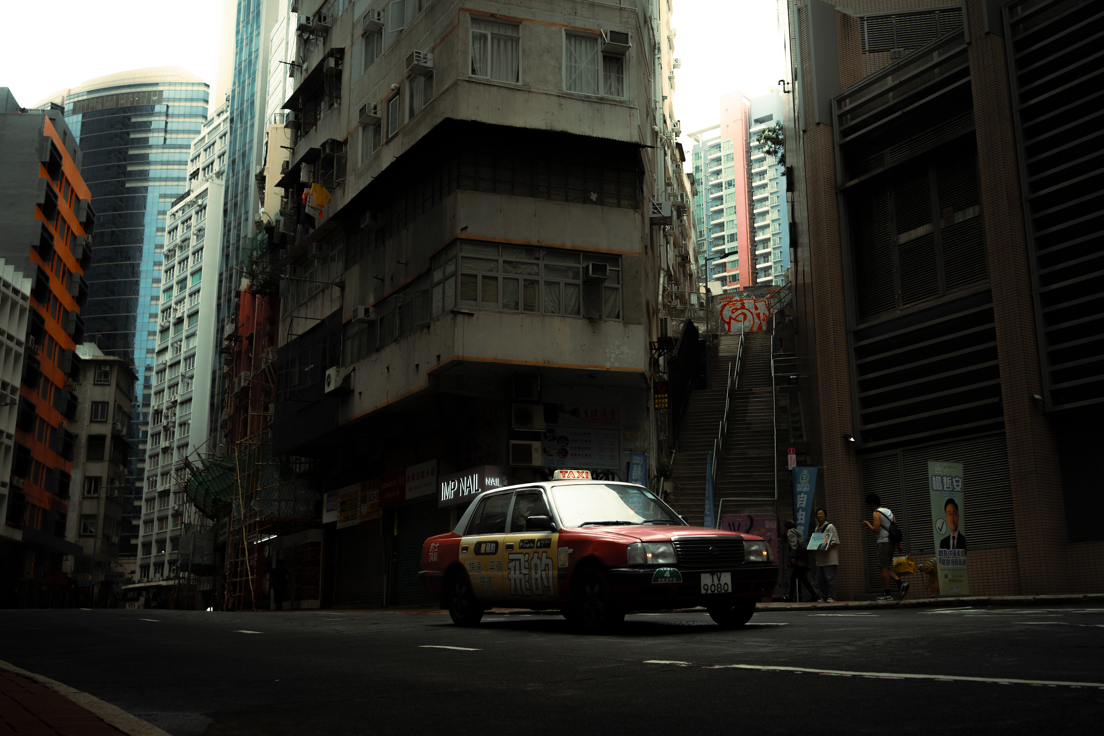 Red Taxi in the street of Hong Kong
